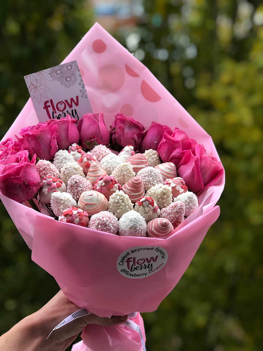 Прекрасные букеты из клубники, порадовали мою коллегу! Спасибо веселому курьеру)